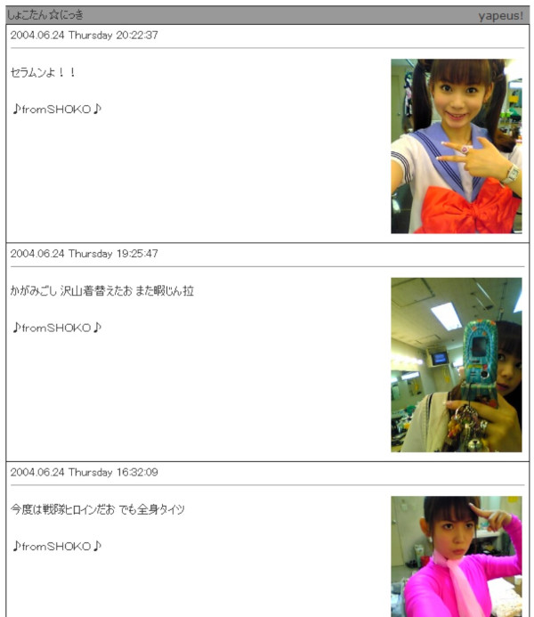 ■『しょこたん☆にっき』:http://blog01.yapeus.com/users/strawberrytime/