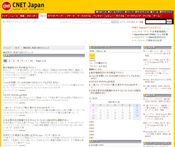 後に「ウェブ進化論」を著した梅田望夫の『梅田望夫・英語で読むITトレンド』、『高木浩光@茨城県つくば市の日記』、